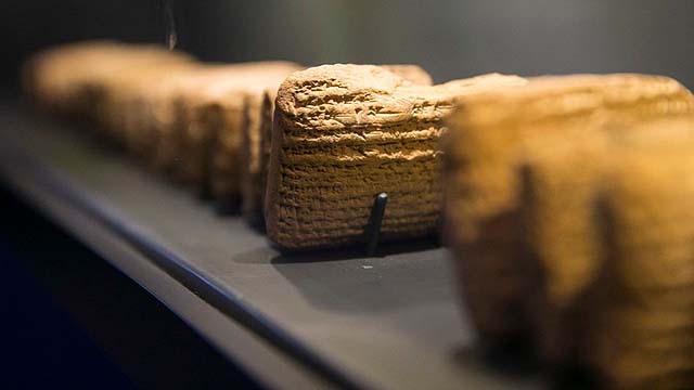 Sous le titre « les rivières de Babylone », ces documents sont exposés au musée biblique de Jérusalem depuis le 1er Février. Il s’agit de cent dix tablettes d’argile, dont certaines ont été cuites. Elles sont rédigées en cunéiforme (l’écriture doit son nom à ses lettres en forme de clous.) et proviennent des archives administratives de Babylone (Irak.)