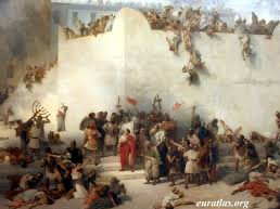 Tacite écrit « Ce n’était entre eux que combats, trahison, incendies. » Judée et Samarie mises au pas, Vespasien installe le siège devant Jérusalem.