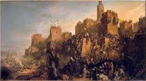 Le 25 Mai la première enceinte est franchie ; le 30 Mai le deuxième rempart est abattu. Malgré leur extrême faiblesse les Hiérosolomytains infligent des pertes sévères aux Romains.