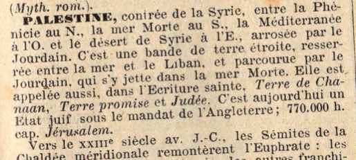 Le Larousse de 1925 partageait les croyances papales erronées. En témoigne sa définition de la Palestine, qui reprend les chiffres et les lettres que l’UE s’interdit de regarder :