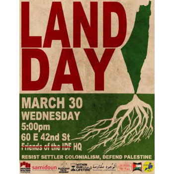 La journée de la Terre, c’est l’anniversaire d’une manifestation qui a eu lieu en 1976 en Cisjordanie, à la suite de l’expropriation (financièrement compensée) par les Juifs, de 2500 hectares en Galilée. Les contestations ne concernent pas l’expropriation elle-même, qui est du même ordre que celles des propriétés figurant sur le tracé du métro du « Grand Paris », mais s’insurgent que l’État juif y ait logé Rafael, l’autorité israélienne pour le développement d’armes et de technologie militaire.