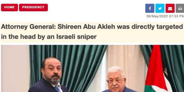 Tous les médias… sauf les Israéliens, cela va de soi, pom pom, convergent pour reprendre les « conclusions » de l’enquête palestinienne sur l’assassinat prémédité de la journaliste d’Al-Jazeera par un sniper de Tsahal (Agence palestinienne Wafa).